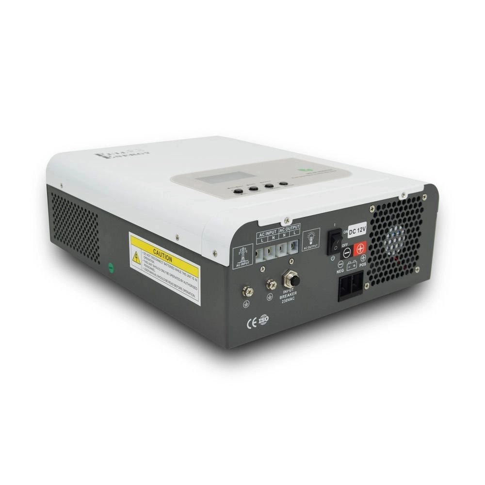 Гібридний однофазний інвертор. Номінальна потужність: 1.2 кВт. Вхідна напруга: DC 12 В. Струм зарядки: 30 А. Номінальна напруга: AC 220 В. Форма вихідного сигналу: чиста синусоїда. Функція холодного пуску. Габаритні розміри: 325 х 263 х 123 мм.