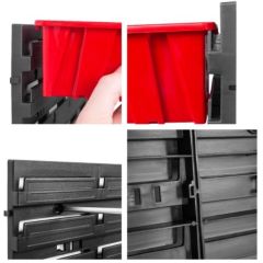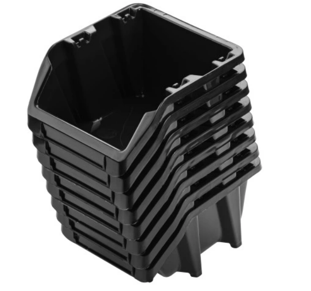 Ергономічна їхня форма дає змогу штабелювати контейнери, вставляти один в одного. Зрізана передня частина відкриває гарний доступ до внутрішнього вмісту. Контейнери використовуються окремо або можна повісити задньою частиною на спеціальну панель, яку можна також у нас придбати.