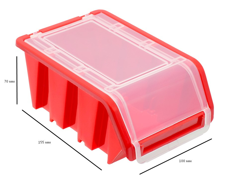 Контейнери з кришкою 155*100*70 мм червоний - незамінне місце для дрібних деталей, цвяхів,шурупів та ін. Завдяки кришці, яка замикається на контейнері спеціальними пазами, дрібні деталі не розсипляться навіть при падінні контейнера на землю.