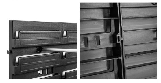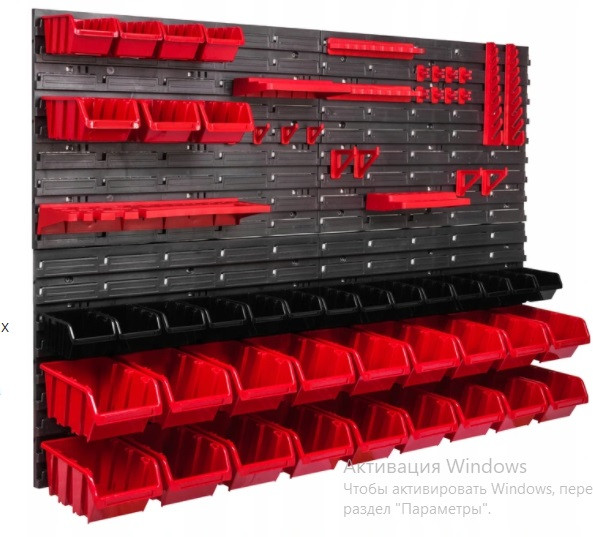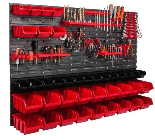 Попри те, що панелі, гачки та контейнери пластикові, вони витримують чималі навантаження й не згинаються. Прекрасно підійде як для професійної майстерні, так і для домашнього гаража.