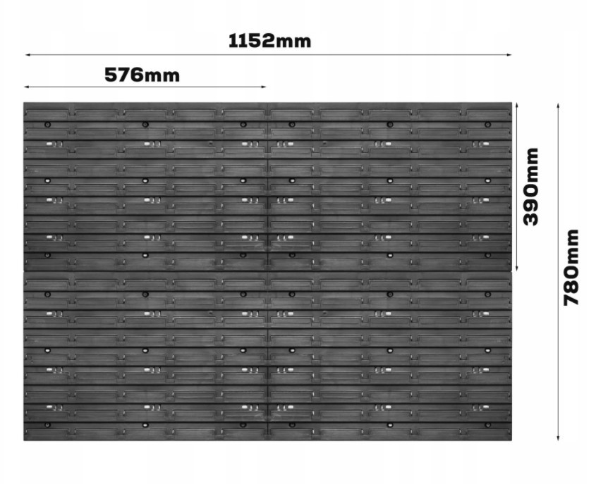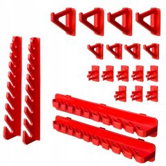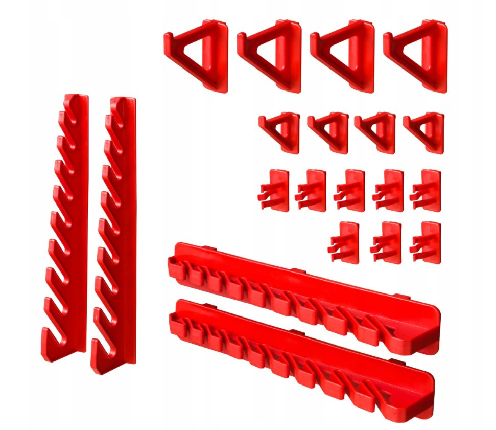 - 1 комплект різних тримачів (КВН 20) (2 вертикальних тримачі; 2 горизонтальних тримачі; 4 гачки 35 мм; 4 гачки 55 мм; 8 тримачів/затискачів для викруток, шестигранників та інших дрібних інструментів);