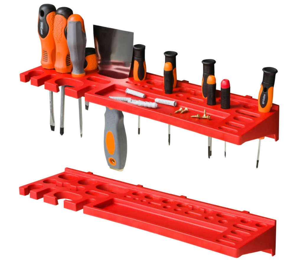 - 1 комплект тримачів (КВН 20) (4 гачка — 55 мм, 4 гачка - 35 мм, 8 затискачів для викруток і дрібного інструменту, 2 вертикальних тримачів ріжкових ключів, 2 горизонтальних тримачів ріжкових ключів);