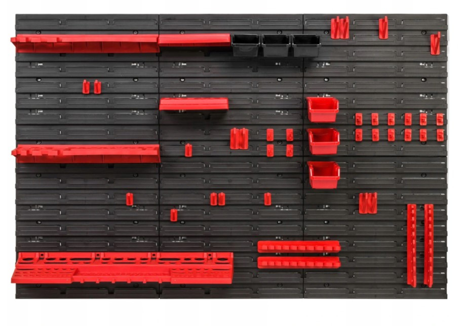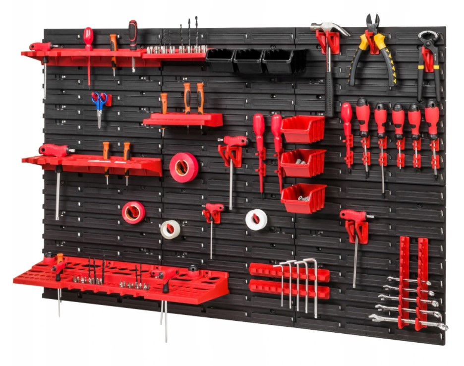 Попри те, що панелі, гачки та контейнери пластикові, вони витримують чималі навантаження й не згинаються. Прекрасно підійде як для професійної майстерні, так і для домашнього гаража.