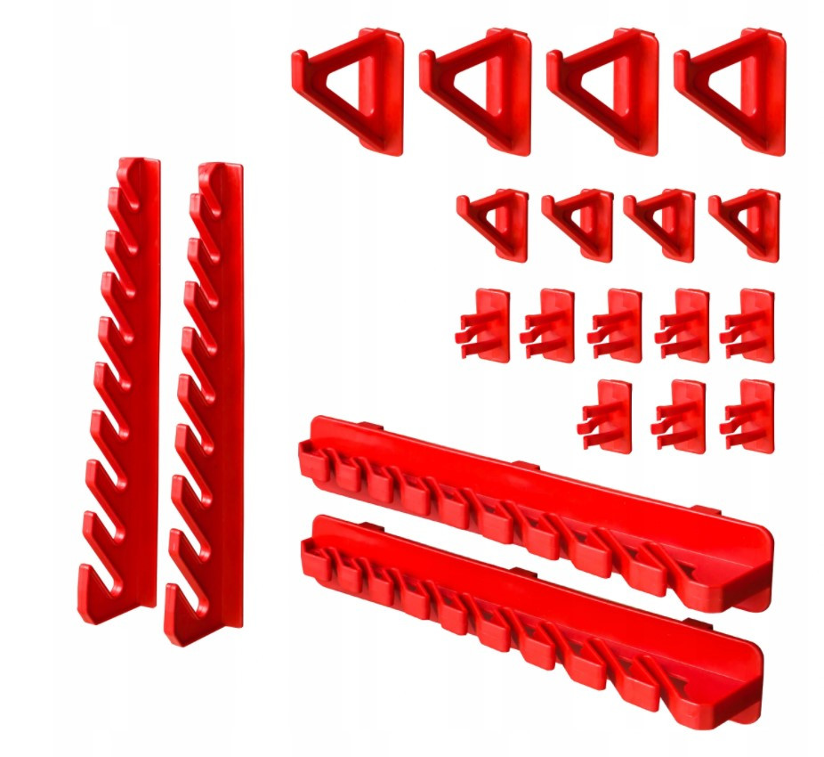 - 2 комплекти тримачів (КВН 20) (8 гачків 55 мм, 8 гачків 35 мм, 18 затискачів для викруток, 4 вертикальні планки для ріжкових ключів, 4 горизонтальних планок для ріжкових ключів).