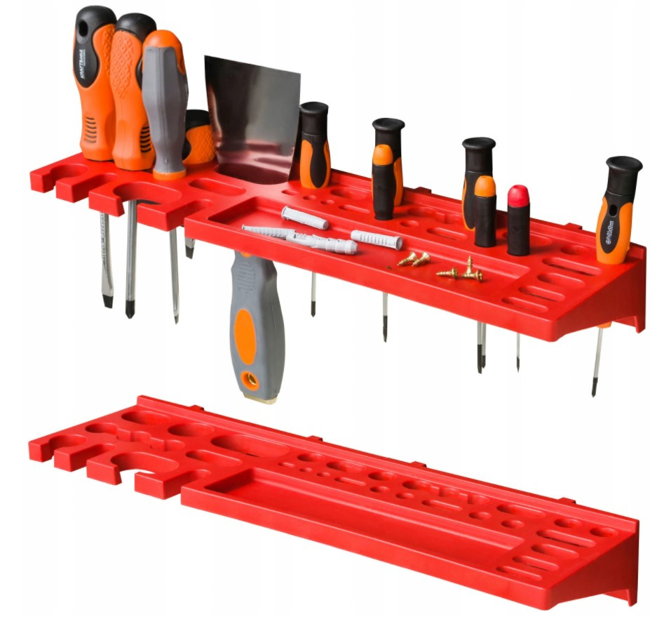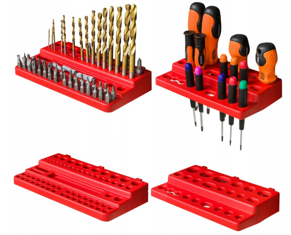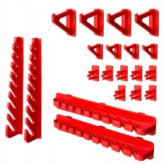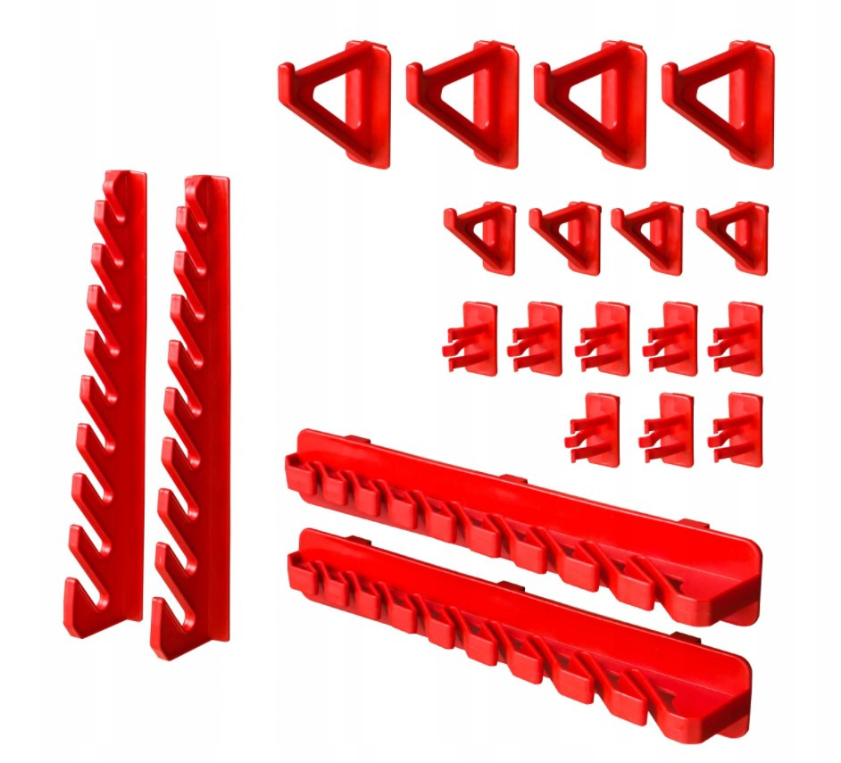 - 1 комплект тримачів для інструментів КВН 20 . 2 вертикальних і 2 горизонтальних тримача для рожкових ключів; 8 тримачів для викруток і дрібних інструментів; 4 вішалок 5,5 см; 4 вішалок 3,5 см);