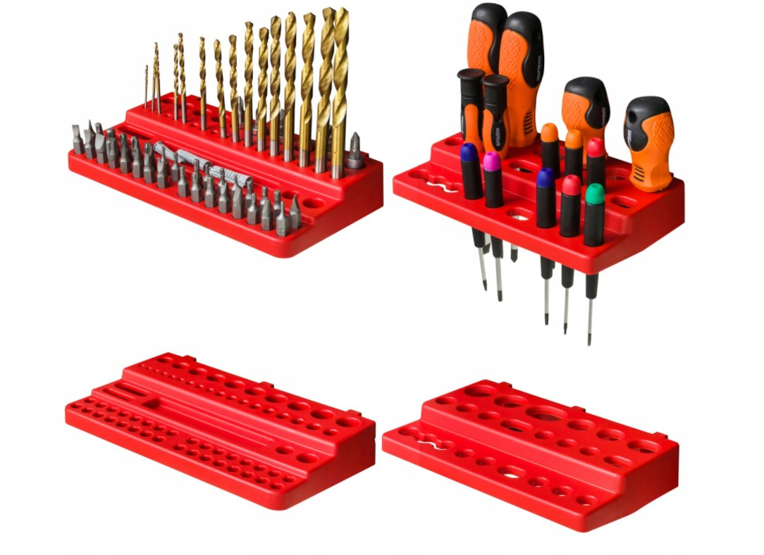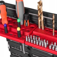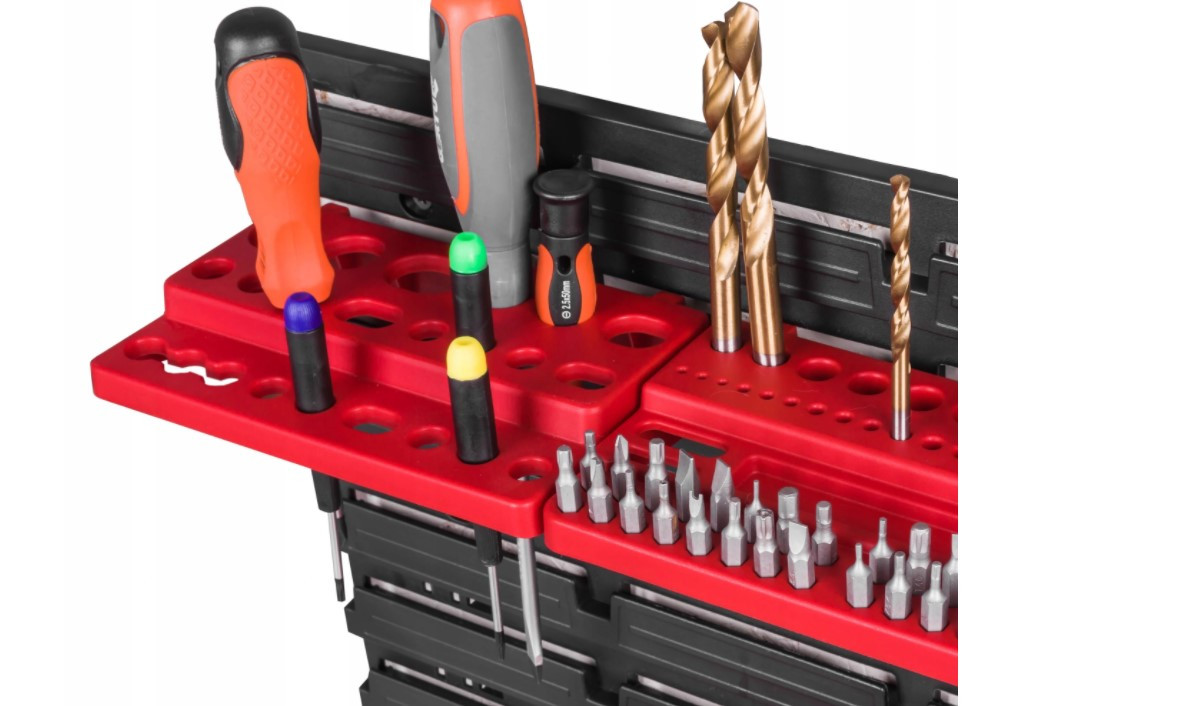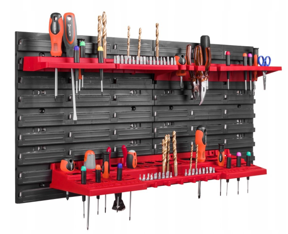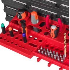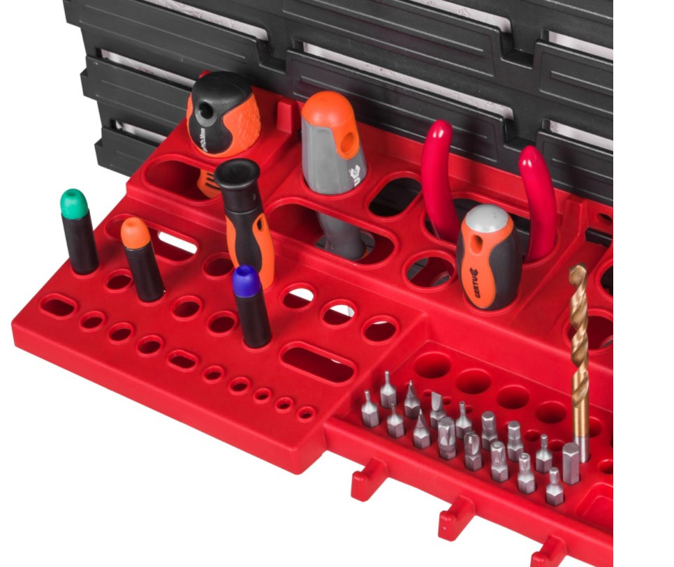 Контейнери можуть бути встановлені на дошці в будь-якому порядку. Дошки з'єднуються між собою горизонтально спеціальними замками на краях. Дошка ідеально підійде для гаража або майстерні.