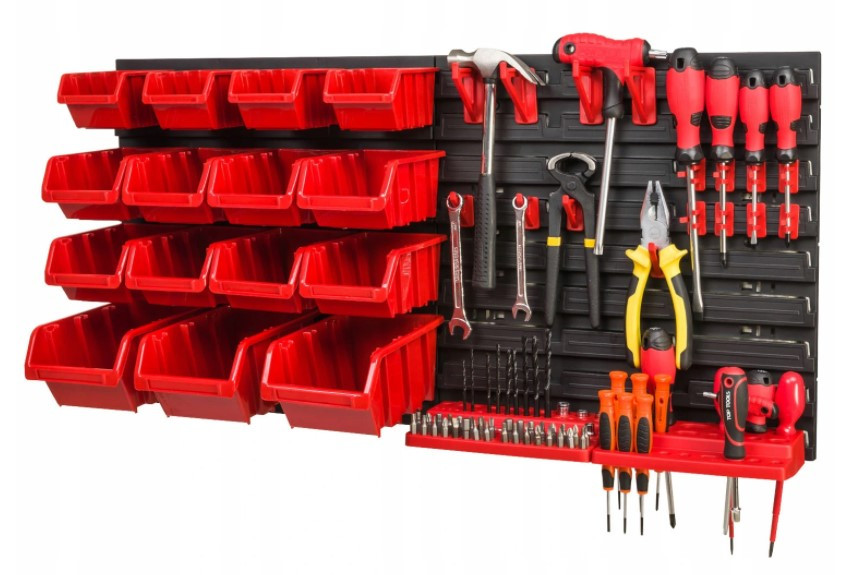 Контейнери можуть бути установлені на дошці в любому порядку. Дошки з'єднуються між собою горизонтально спеціальними замками на краях. Дошка ідеально підійде для гаража або майстерні.