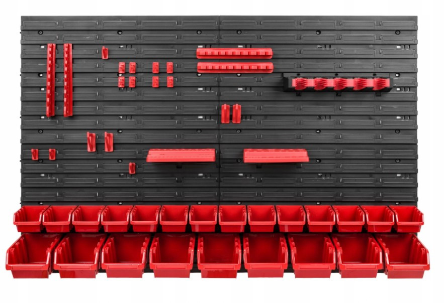 Незважаючи на те, що панелі, гачки та контейнери пластикові, вони витримують значні навантаження і не вигинаються. Добре підійде як для професійної майстерні, так і для домашнього гаража.