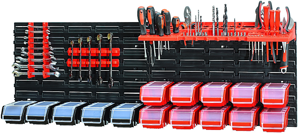 Панель для інструментів Kistenberg 115*39 см + 15 контейнерів з кришкою - практичний спосіб організації майстерні, гаража, складу або підсобного приміщення.
