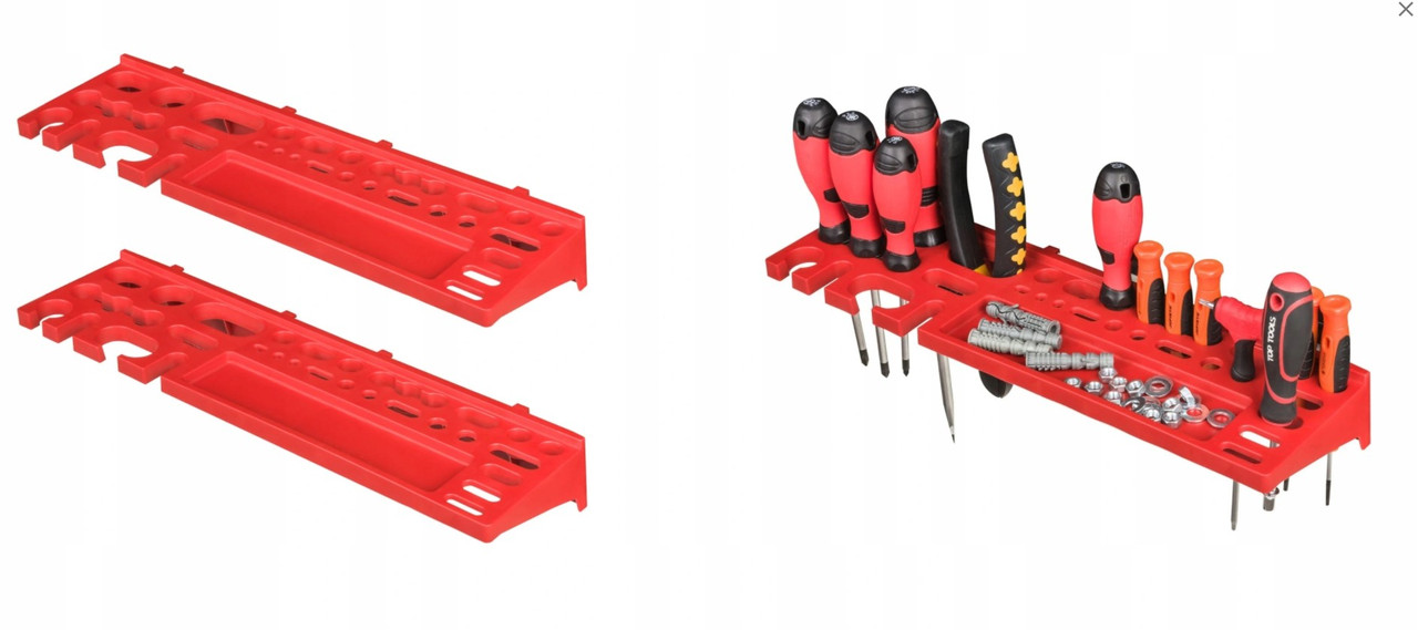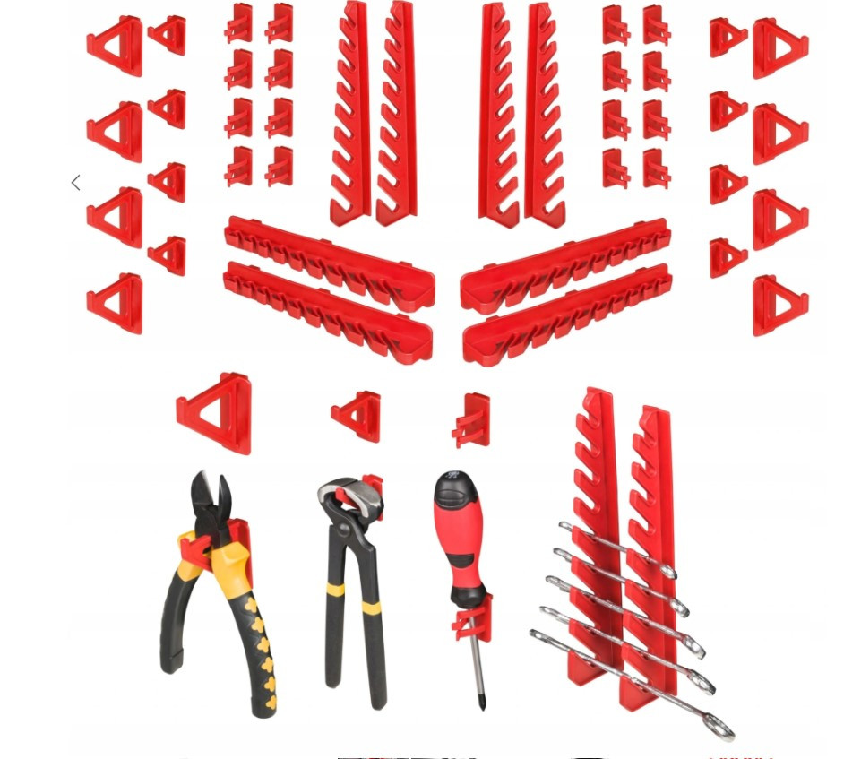 - 2 комплекти тримачів KBH 20 (8 гачків - 55ммм, 8 гачків -35мм, 16 натисків для відвертих інструментів, 4 вертикальних тримачів ріжкових ключів, 4 горизонтальних тримачів ріжкових ключів);
