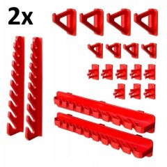 - 2 комплекти тримачів KBH 20: (8 тримачів для рожкових ключів (4 вертикальних 4 горизонтальних); 16 держаків для викруток або іншого інструмента. 8 гачків 5,5 см; 8 гачків 3,5 см);
