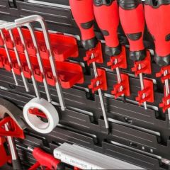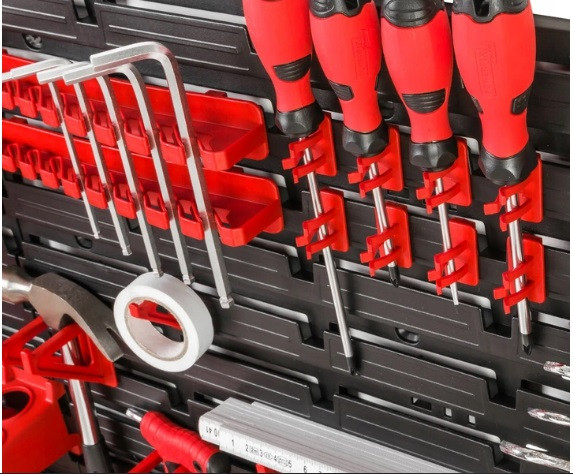 Панель для інструментів із якісного пластику польського виробництва 170*78 см польського виробництва, який максимально організує робочий процес у майстерні, СТО, гаражі, сервісних центрах. Цей комплект мобільний, розкладний, який дасть Вам розмістити на панелях, дошках полиці, тримачі ключів, тримачі дрібниць, різні розміри контейнерів у різному порядку та дизайні.