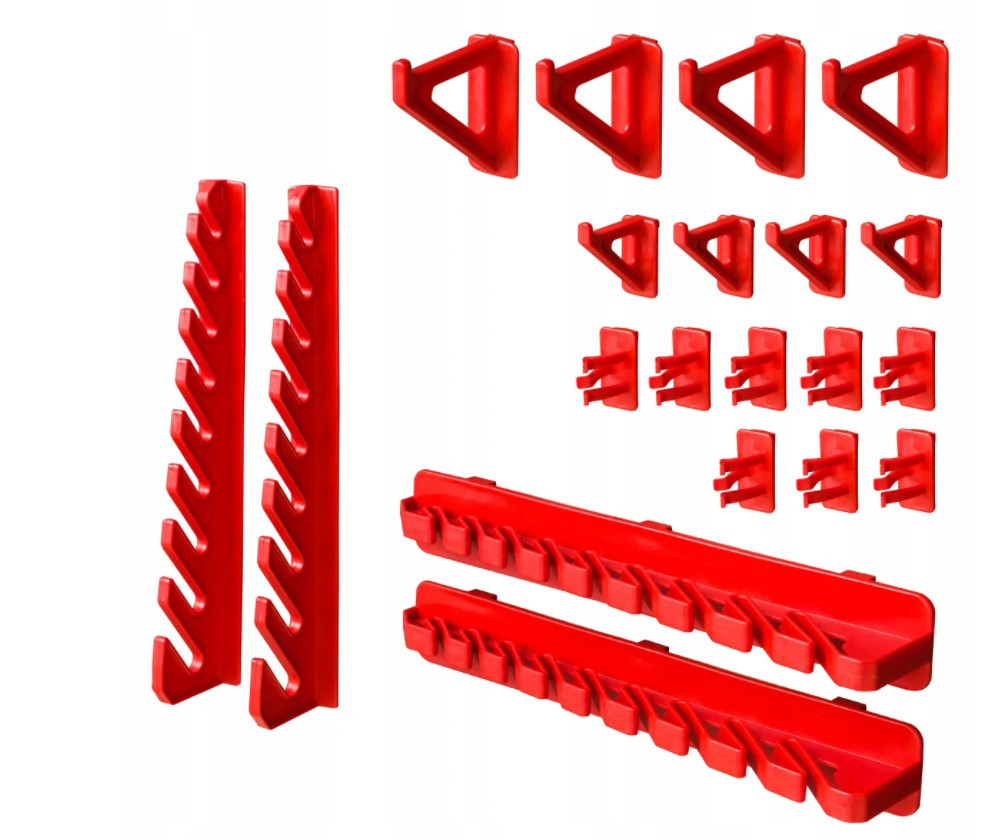 - тримач для інструментів 2 шт. (КВН 20) (8 тримачів для ключів (4 вертикальних | 4 горизонтальних); 16 тримачів для викруток, дрібних інструментів; 8 гачків 5,5 см, 8 гачків 3,5 см);