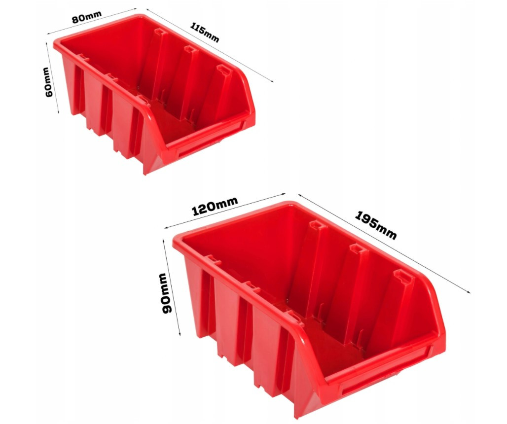 - 1 подвійна полиця (KBS 20-3020), яка складається з двох частин (19,0 х 11,0 х 3,0 см — для біт, свердел, і 18,0 x 11,0 х 3,0 см — для викруток, стамесок, напилок і інструменту)