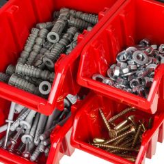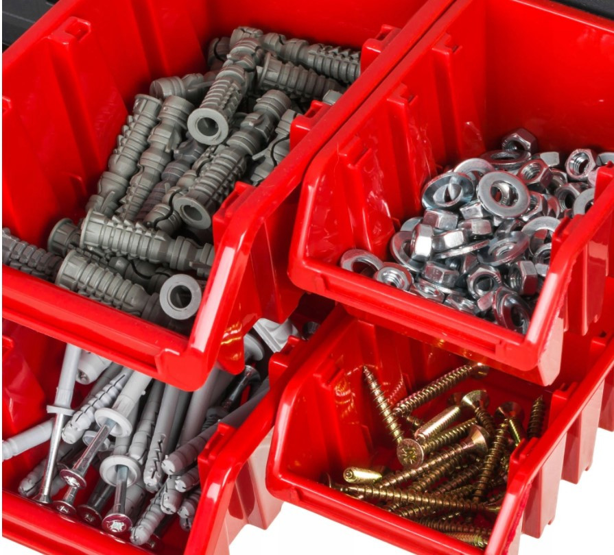 - Модульність — панель можна з'єднувати між собою, водночас у комбінації з контейнерами (KTR), гачками, тримачами створить будь-який для вас, як розмір, так і форму зажаданої схеми зберігання.