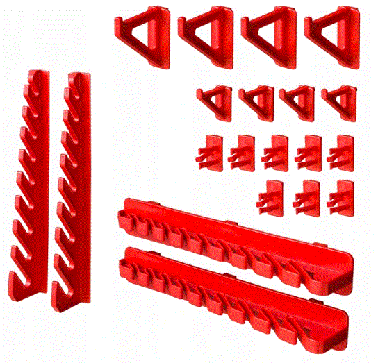 - 1 комплект тримачів KBH 20 (4 гачки 5,5 см, 4 гачки 3,5 см, 8 тримачів під викрутки, 2 вертикальні та 2 горизонтальні планки для ріжкових ключів)