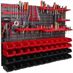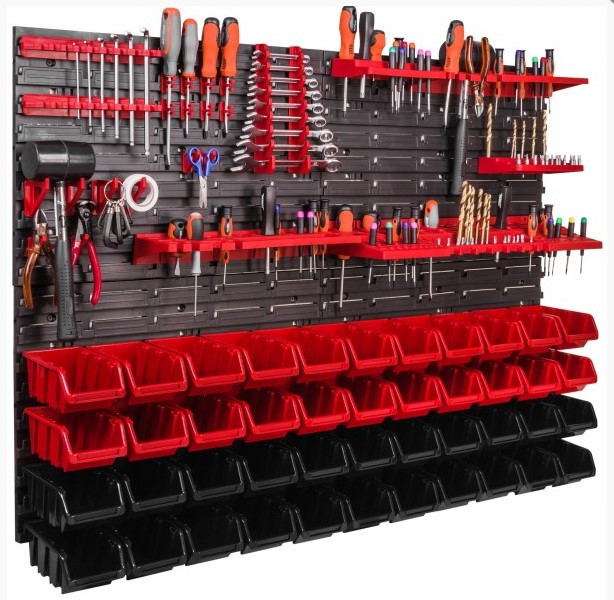 Панелі, гачки і контейнери витримують значні навантаження і не згинаються. Прекрасно підійде як для професійної майстерні, так і для домашнього гаража.