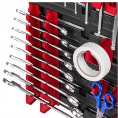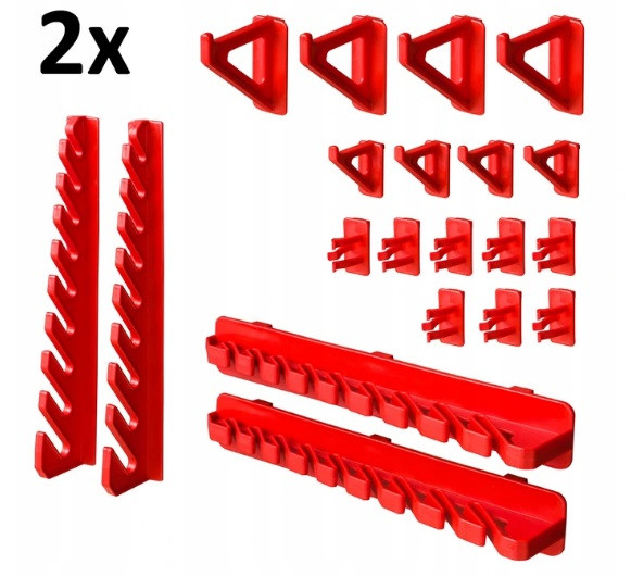 - 2 шт. тримач для інструментів (КВН 20) (4 тримача для ріжкових ключів (горизонтальних); 4 тримача для ріжкових ключів (вертикальних); 16 тримачів для відгорток та інших довгих інструментів; 8 вішалок 5,5 см; 8 вішалок 3,5 см).