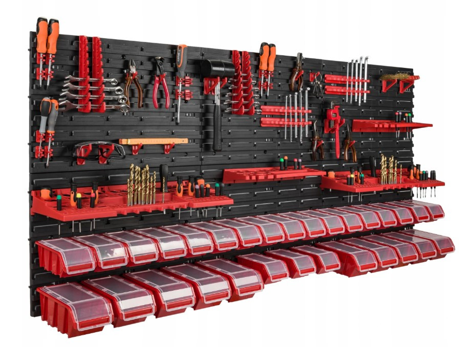 Панель інструментів Kistenberg 174*78 см + 30 контейнерів з кришкою - призначена для розміщення і фіксації на стіні інструментів і ремонтних, аксесуарів комплектуючих в гаражі, СТО, автомайстерень, підсобних приміщеннях. Розроблений дизайн розміщення контейнерів для комфортної роботи автолюбителям.