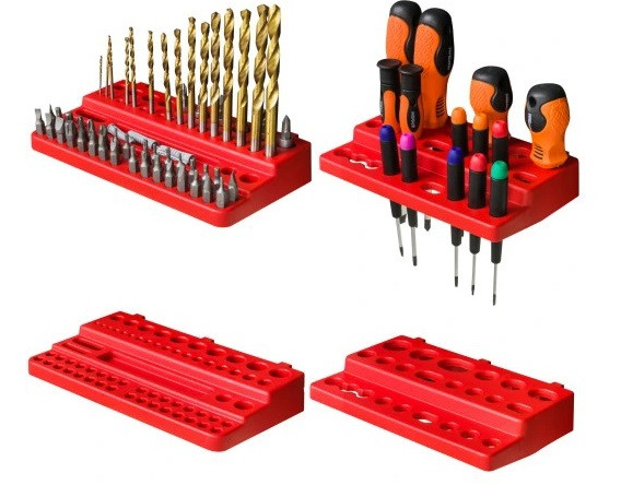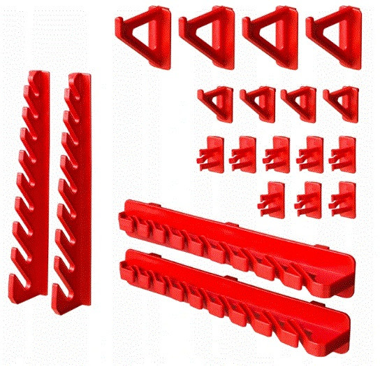 - тримач для інструмента 2 шт (КВН 20) (8 тримачів для ключів (4 вертикальних | 4 горизонтальних); 16 тримачів для викруток, дрібних інструментів; 8 вішалок 5,5 см; 8 вішалок 3,5 см).