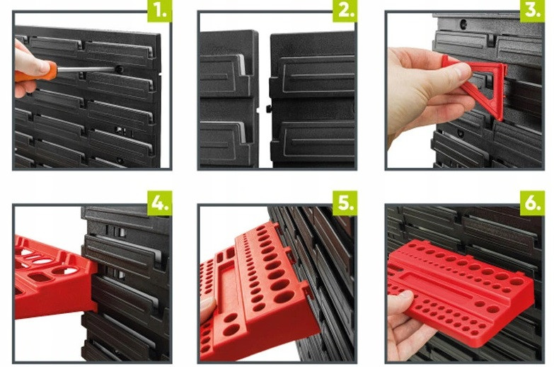 - Перфорація - спеціальні вкладки, які дозволяють швидко монтувати гачки, тримачі та контейнери без використання для цього інструментів.