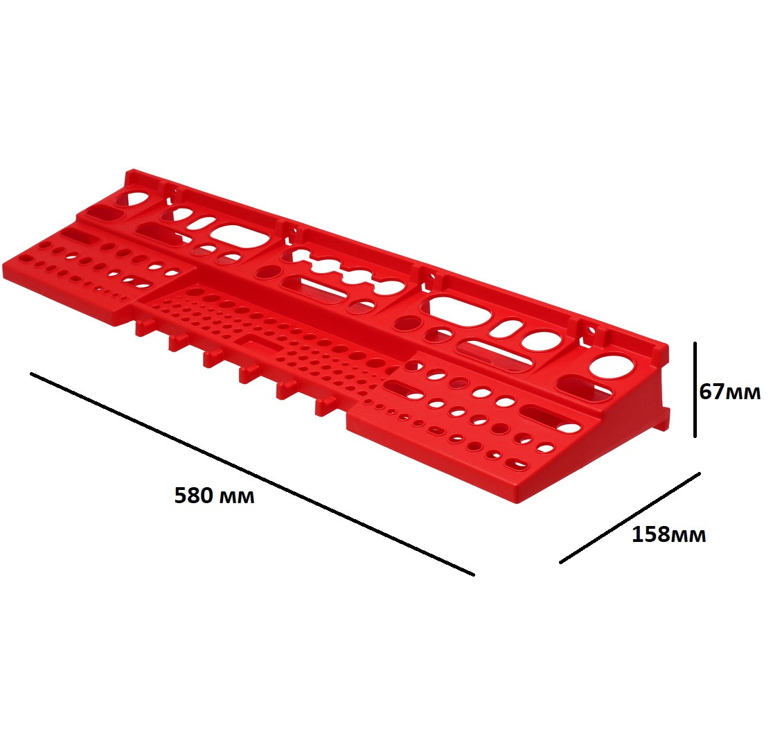 Полиця для інструменту велика 580 x 158 x 67 мм - 137 отворів! Малогабаратне місце, на якому може розміститись більше 137 предметів різної величини. Все буде впорядковано і знаходитись на видному місці.
